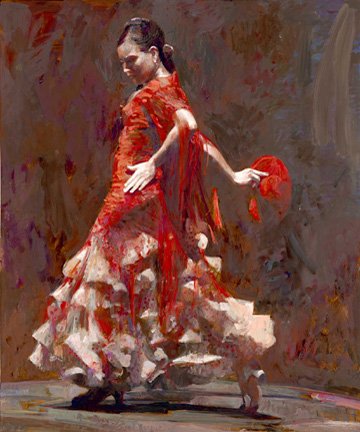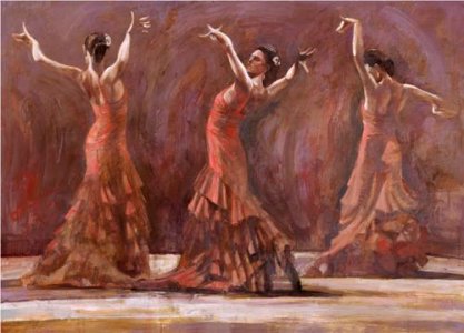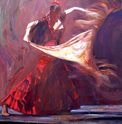 Феерия латинских танцев, танго, фламенко может легко захватить воображение зрителя. Художники тоже к этому неравнодушны и на полотнах пытаются воспроизвести движение и ритмы танца. Один из таких художников - Флетчер Сибторп (Fletcher Sibthorp). Он родился и живет в Хертфордшире (1967 г.р.), Англия, окончил университет в 1989 году, и начал делать свою карьеру в качестве художника. Его исследования фламенко и латинских танцев легли в основу многих его картин, которые передают всю энергию и своеобразность этих танцевальных ритмов. В своих картинах художник часто пользуется эспериментальными методами, используя смолу, цветное стекло и различные пленки. Мастерски используя игру света и тени, он легко передает экспрессию танца и чувств.